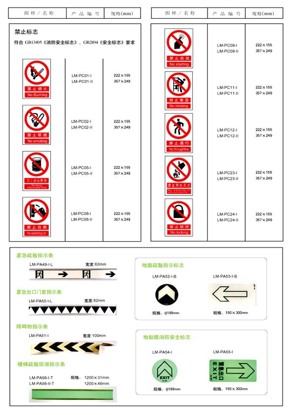 產(chǎn)品系列 蓄光自發(fā)光型消防安全標志包括:疏散通道、疏散樓梯、緊急出口、障礙物、消防器材標志以及警示、禁止、指令性標志。